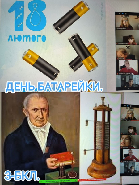 18 лютого - День батарейки. Про це згадали учні 3-Б класу нашого закладу, які разом зі своєю вчителькою знаходять якісь цікавинки. Сьогодні батареї перетворюють хімічну енергію в електричну завдяки хімічним реакціям, і є невід’ємною частиною нашого повсякденного життя. Батарея — це термін 18–19 століть, який позначав кілька конденсаторів або лейденських банок, з’єднаних паралельно.