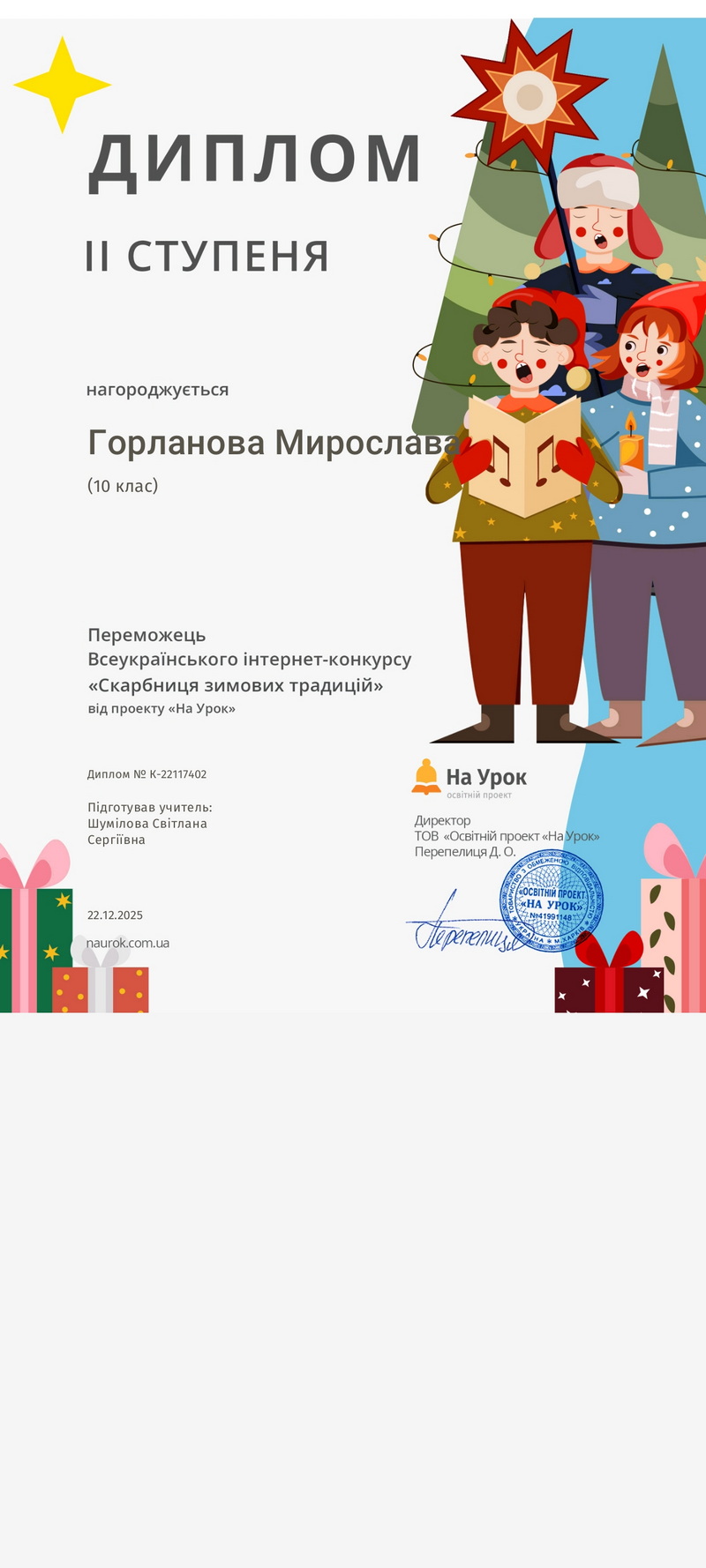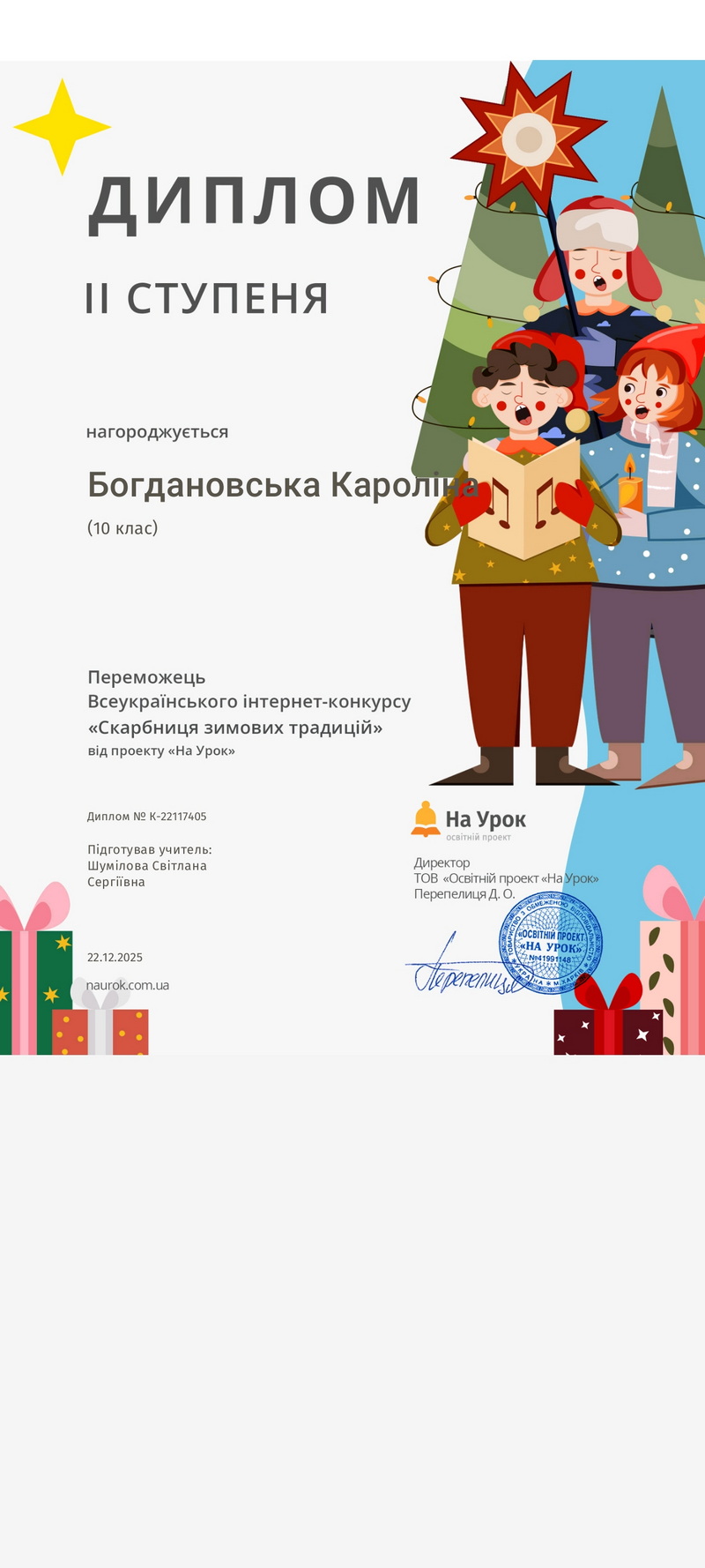 Учні 10-А з нетерпінням чекають зимової казки, яку приносять традиційні свята. Тож, напередодні Різдва вони взяли участь у Всеукраїнському конкурсі «Скарбниця зимових традицій», де дізналися багато нового про українські зимові традиції. Головна мета конкурсу — сформувати цікавість до вивчення народних традицій, допомогти школярам краще зрозуміти значення кожного свята та подарувати віру в різдвяну казку.